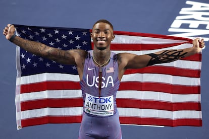 Ni sonrisas ni cariños los tíos duros de los 60m, tatuajes de estibadores portuarios y miradas cargadas de mensajes. Lucha de estilos de países de generaciones. Por Estados Unidos, el viejo Trayvon Bromell, en una final de nuevo 10 años después de ganar los 60m en el Mundial de Portland a los 20, más joven que nadie nunca (y la mejor marca de su vida en semis, 6,42s), y el joven, el alucinante Jordan Anthony, de 21 años, finito de cuerpo y grandes tiritas en el brazo (secuelas de un control de sangre practicado por un controlador que no le encontraba la vena), que se entrena en Florida con Noah Lyles, al que machaca llamando viejo con la lógica del vestuario de fútbol americano que también practicaba en Arkansas con los Razorbacks. Contra ellos, Jamaica, donde no existe la pista cubierta, con el armario poderoso Kishane Thompson, el derrotado por Lyles en la final olímpica de los 100m en París. Ganó el joven y fluido Anthony (6,41s); tercero, el viejo Bromell (6,45s). Entre medias, por milésimas, la isla, el Caribe del brusco Thompson (6,45s).