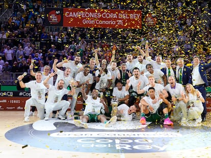 “La experiencia es un grado. ¡A mí no me vuelven a joder el traje!”, se reía Ibon Navarro en los pasillos del Gran Canaria Arena. El Unicaja acababa de ganar la Copa al Real Madrid (93-79) y el entrenador vitoriano ya sabía lo que le esperaba en el vestuario. Por eso colgó la corbata y la chaqueta y se vistió de corto y con chanclas. Al unirse a la fiesta de sus jugadores, Ibon vio que alguien había escrito unas palabras en la pizarra donde él dibujaba esquemas: “Siete días libres”. Entre risas, quiso borrar el mensaje. No le dio tiempo ni a quitar la primera letra: los campeones le llevaron en brazos hasta bañarlo en una pequeña piscina hinchable.