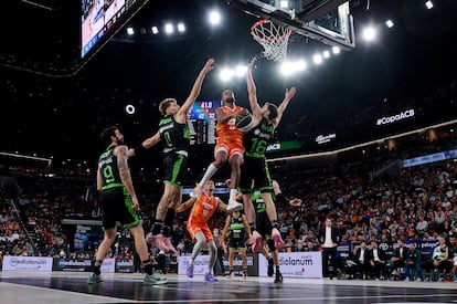 Pero nunca se desespera este Valencia ultrasónico, capaz de acelerar en cualquier momento y carbonizar la desventaja. Pedro Martínez, quince Copas ya a sus espaldas, pidió más defensa y le cedió el volante a Jean Montero. Esa conjunción fue demasiado para el equipo de Badalona, que vio marchar a su rival hasta los 12 puntos de diferencia (46-34 al descanso). Así es este Valencia, extremadamente habilidoso y mortífero por fuera, y muy versátil por dentro.