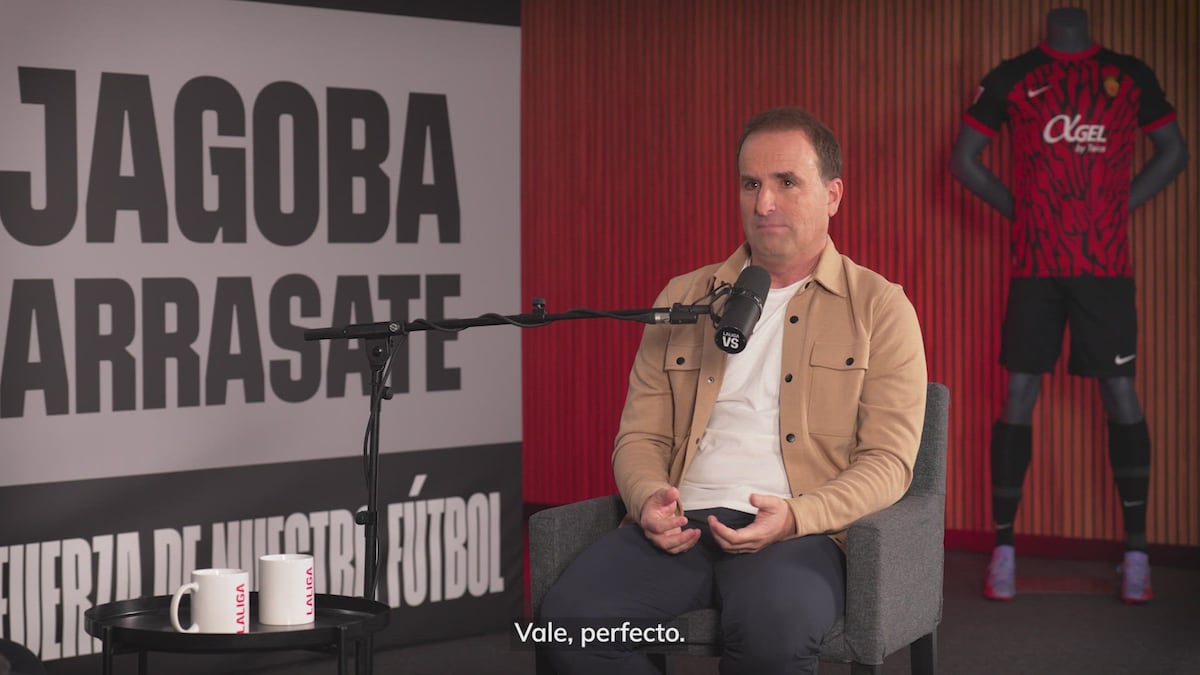La chispa se encendió en el antiguo campo de Atocha, donde la Real Sociedad consiguió los títulos de liga de 1981 y 1982, una Supercopa de España y la Copa del Rey de 1987. Mientras esos trofeos se sucedían, Jagoba Arrasate (Berriatua, Bizkaia, 1978) era un niño que disfrutaba del fútbol playero –la diferencia con el fútbol playa es que los rivales son las mareas– en un club de Deva (Gipuzkoa) y de las visitas al estadio de sus amores para ver las paradas de Arconada, los regates de López Ufarte y la jerarquía de Bakero, entre otros jugadores que protagonizaron la etapa más exitosa de la historia realista. Ir a Atocha dependía de que le tocara plaza en un sorteo que se hacía entre los compañeros del equipo de fútbol playero. “Te puedes imaginar la ilusión de un niño de siete años esperando cada 15 días a ver si me tocaba a mí”, le cuenta el entrenador del RCD Mallorca al periodista de DAZN Rafa Escrig (Castellón, 1994) durante la charla en este episodio del videopódcast LALIGA VS.