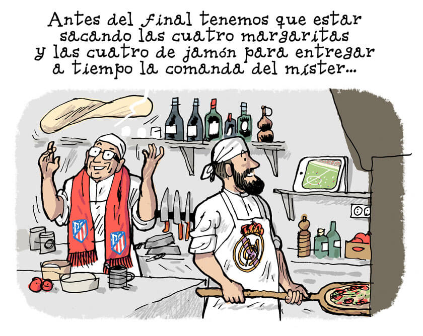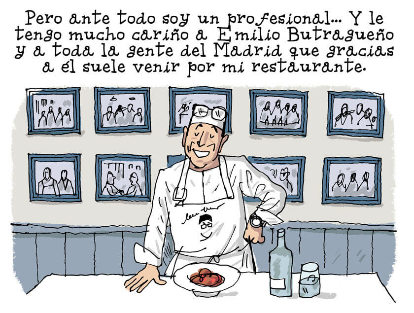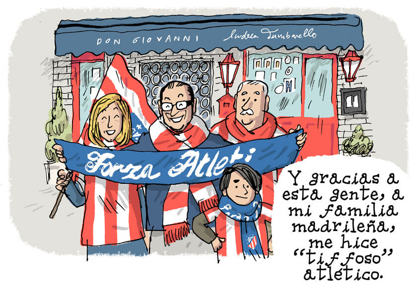 El historietista y Premio Nacional de Cómic Alfonso Zapico ilustra con motivo de ElDerbi de Madrid la historia de Andrea Tumbarello, restaurador colchonero que suele dar de cenar a los futbolistas del Real Madrid