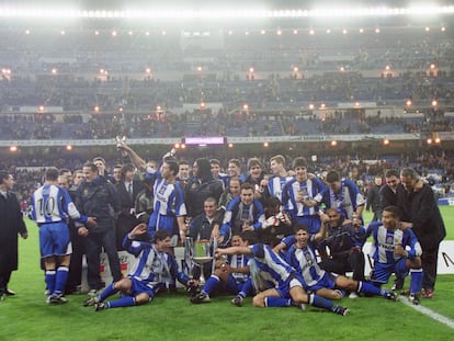 Nada fue normal en aquellos albores del milenio. “Vivimos una de las grandes fiestas de la historia de A Coruña”, recuerda Lendoiro, el habitante de las noches interminables. Todavía hoy está convencido de que el Espanyol había llegado primado a Riazor aquel 19 de mayo. El día anterior, Víctor Sánchez del Amo y Donato se habían quedado a ensayar un córner tras el entrenamiento en Riazor. Un balón al primer palo, una carrera desde atrás y un escorzo para dirigir la pelota. Todo eso ahora ya es arte. Ya lo dice siempre el gran Lucas Pérez, uno de los niños que creció entre tanta leyenda. “Somos uno de nueve [clubes campeones], que nadie lo olvide”.
