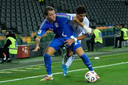 Obligados a atacar para sustentar la condición de favoritos que les asigna el peso del palmarés —cuatro títulos de la Copa del Mundo en sus vitrinas—, forzados a imponerse como locales, y acuciados por la vergüenza de no haberse clasificado para los dos últimos mundiales, la tensión se apoderó de las piernas de Locatelli y sus compañeros. No conectaban tres pases seguidos una vez que se internaban en campo israelí. Había tanta gente en el área que defendía el portero Glazer que para avanzar hacía falta precisión milimétrica. Una finura que no caracterizó a Barella, Retegui y Raspadori, y que a la larga reforzó la autoestima de sus rivales, lanzados a la contra. Israel pudo adelantarse con tiros de Gloch y Slomon. El palo y Donnarumma lo evitaron. Si el árbitro no hubiera juzgado con extremo rigor un contacto de Baltaxa sobre Retegui en el minuto 45, las cosas se habrían empinado hacia lo inconcebible camino de la segunda mitad. Pero Turpin pitó penalti, Retegui lo metió, y los azzurri volvieron a respirar.