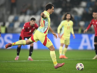 Goles de Oyarzabal y seguridad de Unai Simón. Una seguridad que el portero vasco conserva a pesar de que De la Fuente le cambie las parejas de centrales. Al técnico de la Roja no había quien le tocara la dupla que formaban Le Normand y Laporte, uno criado en la Real, el otro en el Athletic, uno diestro, el otro zurdo, los dos nacidos en Francia. Sin embargo, desde que comenzó la clasificación rumbo a Estados Unidos, México y Canadá, el preparador de España ha utilizado a cuatro parejas de centrales distintas en cinco partidos. Comenzó con Le Normand-Huijsen (Bulgaria y Turquía en septiembre), continuó con Cubarsí-Le Normand (Georgia) y Le Normand-Laporte (Bulgaria) en octubre y este sábado ante Georgia mezclaron Pau Cubarsí y Laporte.