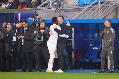 Esta vez, Alonso terminó abrazado a Vinicius cuando el brasileño fue sustituido en el 90 como jugador clave en el 1-2 de Rodrygo, que ha regresado de lo más profundo de la Tierra para anotar dos goles en los últimos cuatro días después de meses engullido por un agujero negro. En Liga no anotaba desde el 19 de enero, a Las Palmas.