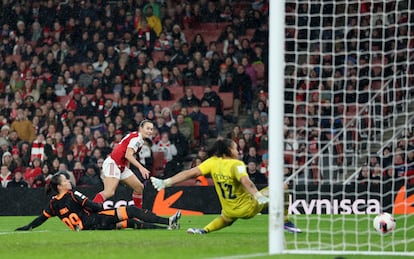 La caída del vencedor de la Concacaf rebajó el cartel de una final en la que todas las quinielas visualizaban al Arsenal ante el equipo de Estados Unidos. El favoritismo de las londinenses se hizo evidente desde el inicio. Alessia Russo, la futbolista más diferencial junto a Mariona, se quedó en un mano a mano ante Lele en el minuto cinco tras un pase filtrado de Emily Fox. La guardameta brasileña salvó la ocasión con una buena estirada y un instante después volvió a birlarle otro uno contra uno a la ariete, pero Olivia Smith embocó el rechace en la red.
