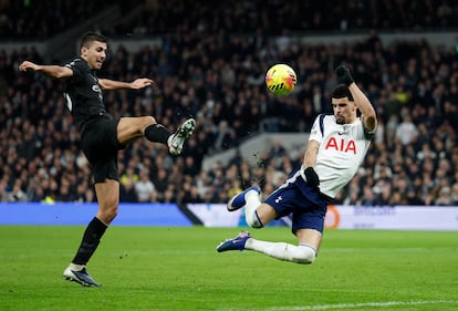 El partido parecía muy cómodo para los de Guardiola que solo sufrieron un tiro a puerta. Pero apareció Solanke, el delantero que echaba en falta el Tottenham todo este curso por una lesión en el tobillo. Era el quinto partido del inglés desde la vuelta de su lesión y fue quien resolvió para los de Thomas Frank. Los locales salieron a morder tras el descanso ante un City que parecía desconcertado con lo que estaba ocurriendo. Y en el minuto 53 apareció Solanke para marcar el primero. Recibió un balón al pecho, cuerpeó con Kushanov para quitárselo de encima, se colocó el balón en su pierna derecha y golpeó la pierna de Guehi y la pelota para anotar. En un primer momento, la Premier League dio gol en propia del central, pero minutos después, rectificaron.