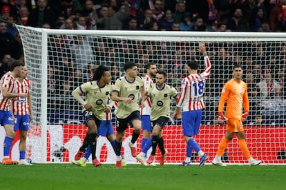 La queja llega tras la anulación del gol de Pau Cubarsí en el minuto 51 de la ida de la semifinal de la Copa del Rey entre el Atlético de Madrid y el Barça. Los colegiados necesitaron siete minutos para comprobar la legalidad del tanto —que finalmente quedó anulado por fuera de juego—, con los jugadores peloteando sobre el campo. Los futbolistas del Barcelona, tras el encuentro, se aquejaron públicamente, con Frenkie de Jong tildando de “vergüenza” las decisiones arbitrales. También se enfadó Hansi Flick: “¿Cuánto han tardado? ¿Siete minutos? ¡Es un desastre!”.