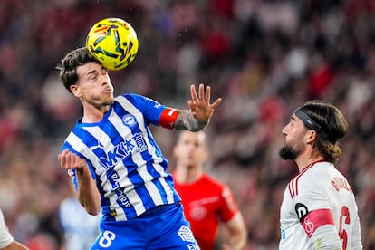 El fútbol presenta, a veces, cuestiones muy difíciles de resolver. Teóricamente, la temprana expulsión de Juanlu a los 16 minutos hubiera supuesto una losa inaguantable para este Sevilla cogido con alfileres. Sin embargo, la justa ausencia del nervioso canterano andaluz le allanó el camino a su equipo y se lo dificultó al Alavés. Los andaluces ya solo tenían una hoja de ruta. Defender y esperar en bloque bajo a un Alavés increíblemente inoperante con el balón en los pies a pesar de su superioridad numérica. Entre el minuto de la expulsión de Juanlu y el gol de Sow en el 42, los jugadores del Alavés fueron incapaces, no ya de tirar a puerta, sino de hilvanar una sola jugada con cierto sentido. La aportación de Denis Suárez, Aleñá y Calebe fue muy baja. Ante tanta inoperancia, Sow marcó en el único disparo a puerta del Sevilla en el primer tiempo.