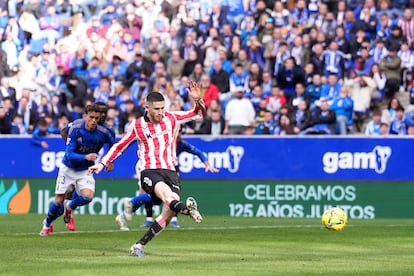 El Athletic Club protagonizó una reacción de carácter en el Carlos Tartiere tras verse sorprendido por un gol tan simple como dañino del Real Oviedo. El tanto de Chaira llegó en una acción que rozó lo rudimentario: saque largo del portero, dos peinadas consecutivas, primero de Reina y luego de Fede Viñas, que desactivaron a la defensa rojiblanca y el balón cayendo franco para que el atacante definiera. Una jugada directa, sin elaboración, que castigó la falta de contundencia y concentración del Athletic y que parecía confirmar las malas sensaciones de una primera parte espesa, sin ritmo ni profundidad. El equipo bilbaíno apenas había inquietado la portería rival y transmitía dudas en cada transición defensiva.