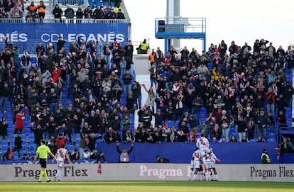 En transporte público o privado, 5.335 aficionados, unos 300 del Atlético, se desplazaron a Leganés para asistir al partido que ha puesto de nuevo en solfa al propietario del Rayo Vallecano, Raúl Martín Presa. El Rayo, es decir Vallecas, se manifestó en Leganés. Su gente cargó contra un dueño que en todos estos años no ha logrado conjugar el éxito de mantener al club en la máxima categoría con el aprecio de la masa social franjirroja. Un gol, un cántico contra Presa. El Rayo está partido, pero compite como puede a las órdenes de un entrenador que habla tan claro como ve el fútbol. Los goles de Fran Pérez, Óscar Valentín y Mendy le dieron el triunfo al equipo de Iñigo Pérez, más enchufado y certero que el Atlético, al que le sentaron mal las rotaciones de Simeone porque este curso hasta puede ser menos nocivo para su figura ser cuarto si caza la Copa o da la campanada en la Champions. La victoria desahoga al Rayo en la tabla, aunque siga ahogado en una crisis institucional crónica de compleja solución para su mandamás.