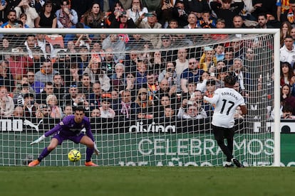 El Valencia logró una victoria raquítica (1-0) pero extremadamente valiosa para un equipo permanentemente en apuros. El gol de penalti de Ramazani después de una buena acción de Sadiq, el ídolo consagrado en Mestalla, cazado dentro del área por Herrera, acabó con la racha de Osasuna, que avanzaba en la Liga a la velocidad de los grandes y que frenó en seco ante un rival que protegió con esmero el tesoro encontrado por el delantero nigeriano.