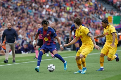 XI: Joan García; Araujo, Cubarsí, Gerard Martín, Balde; Gavi, Eric García, Pedri; Lamine Yamal, Fermín y Ferran Torres.