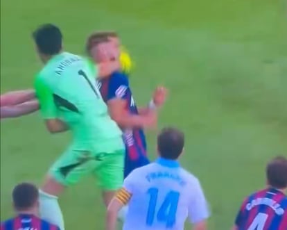 Andrada, portero del Zaragoza, asesta un puñetazo a Pulido, del Huesca, tras ser expulsado