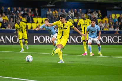 El Villarreal quería dejar amarrada su plaza Champions esta noche ante un Celta en crisis de resultados y que busca para el próximo curso la plaza europea que el Getafe le había birlado. Pero el primer golpe en el choque lo dio el Villarreal a los 24 segundos de partido. En una conducción vertiginosa de Moleiro, el canario se adentró en el área y fue arrollado por Yoel Lago, que ya cometió penalti la pasada jornada sobre Lamine en el Camp Nou. El colegiado lo vio clarísimo y señaló el punto fatídico. El capitán groguet, Gerard Moreno, agarró el balón y con mucha calma engañó a Radu con un remate suave pegadito al poste. El encuentro se ponía cuesta arriba desde muy temprano para los de Claudio Giráldez.