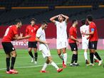 Le duró a España la inspiración lo que tardó Taher en aplastar el tobillo izquierdo de Ceballos. Habían transcurrido cuarenta minutos cuando el atacante egipcio, sin mala fe pero excesivo al ir a la disputa del balón, cazó al capitán español y lo apeó del estreno. “Debemos esperar, pero tanto lo de él [esguince, según confirmaron los servicios médicos de la Federación] como lo de Mingueza [percance muscular] tiene mala pinta. Estamos muy preocupados porque pueden ser lesiones de importancia”, lamentaba el seleccionador, Luis de la Fuente, serio en el análisis porque al temor de perder dos piezas le añadía el amargor por el pinchazo en el estreno olímpico de Sapporo.