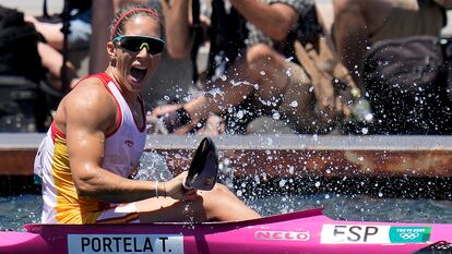 La piragüista gallega entró a las semifinales de forma directa al ganar su serie del lunes. Advertía su técnico, Daniel Brage, en la víspera que era la semifinal más complicada que podía tocarle porque paleaba con las primeras cuatro del último Mundial. No había margen de error. Y ya la semifinal fue de infarto. No clavó la salida como el día anterior y cuando entró a meta los resultados de la cuarta [el último puesto que daba acceso a la final] a la octava tardaron en salir. En el pantalán, Brage y David Mascato se mordían las uñas esperando a que los jueces analizaran las imágenes de la foto-finish. “¡Cuarta, cuarta por una milésima!”, exclaman el presidente de la federación, Pedro Pablo Barrios, y los demás técnicos del equipo que están en la pista y no consiguen estar sentados en las gradas. “Cuidado que no es oficial todavía”, les dice Brage. Mascato mientras se va corriendo a buscarla al hangar. Un rato después se oficializa el resultado, hay dos cuartas (Portela y la sueca Linnea Stensils) y ambas acceden a la final que, de forma excepcional, contará con nueve piragüistas.