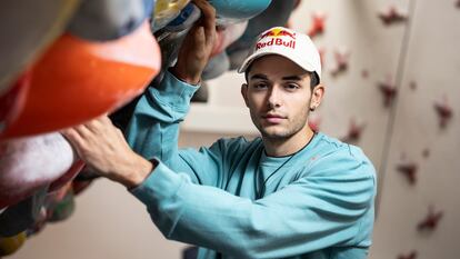 “Es un equilibrio entre el cuerpo y la mente”, expresa el joven sobre su trabajo. No toca las pesas, sino que aparte del rocódromo cultiva la flexibilidad, siempre en busca de un balance entre pesar poco para subir ligero y no perder músculo. Consciente de los problemas de trastornos alimenticios que acompañan a veces a su deporte, él prefiere no decir cuánto marca la báscula. Sí confiesa el número que calza: un 43 y medio de zapatillas deportivas, pero hasta cuatro números menos en los pies de gato con los que se agarra a la pared. También afina el control de las emociones con un psicólogo.