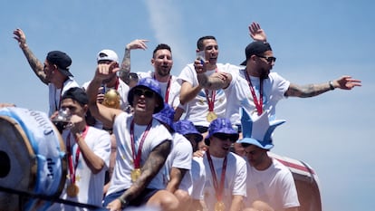 El presidente argentino, Alberto Fernández, decretó festivo para que todos los aficionados pudiesen participar de las celebraciones. Pese al calor, la aglomeración y las horas de pie, muchísimos resistieron. La felicidad colectiva se reflejaba en una marea humana que cantaba y saltaba sin cesar. “Muchachos, ahora solo queda festejar, ya ganamos la tercera, ya somos campeón mundial”, se corea en Buenos Aires de forma ininterrumpida desde hace 48 horas, cuando Argentina ganó a Francia. “Olé, olé, el que no salta, es Mbappé”, dice una nueva versión del popular himno contra los ingleses, hoy dedicado a la estrella de la selección gala.