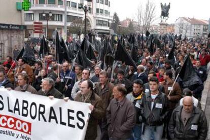 Mientras la práctica totalidad de los trabajadores de la construcción decidían ayer secundar un paro con el que reclamaron la mejora en la aplicación de las medidas de prevención de riesgos, más de un millar de ellos se manifestaron en Burgos encabezados por representantes del comité de empresa y de UGT y CC OO. Los sindicalistas acudieron después a la puerta del local donde se produjo el siniestro, donde depositaron dos ramos de flores.