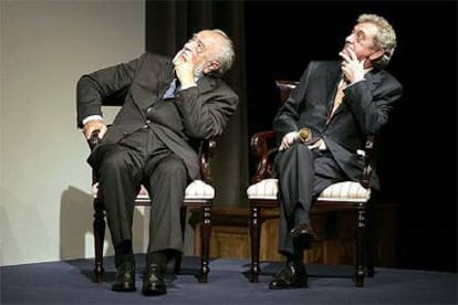 El artista Néstor Basterretxea (Bermeo, 1924) y el industrial Ángel Iglesias (San Sebastián, 1933) recibieron ayer en Vitoria de manos del lehendakari el premio Lan Onari (Al buen trabajo), uno de los principales que concede el Ejecutivo, en reconocimiento a su trayectoria profesional y humana. Basterretxea (a la izquierda en la imagen, en un momento del acto) se refirió en su discurso a la soledad de su estudio y explicó que es allí, frente a su obra, donde se siente vinculado al cuerpo cultural de Euskadi. Iglesias aseguró que para él no ha supuesto un gran esfuerzo su trabajo puesto que se dedica "a lo que le gusta".