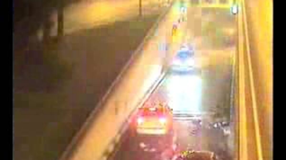 El vídeo ha sido grabado por una de las cámaras de control que el Ayuntamiento de Madrid tiene colocadas en la entrada del túnel de O'Donnell. La grabación dura en total 41 segundos.