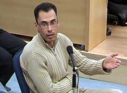 Si en la habitación de cristal blindado instalaran un televisor, no hay duda de quién tendría el mando. Todos los días, cuando los acusados llegan al juicio, cada uno se sienta donde puede. Todos, menos uno. Fouad El Morabit siempre ocupa el mismo lugar, nadie osa quitarle el sillón al jefe. En el extremo más alejado de Gómez Bermúdez, siempre serio, siempre pendiente del mínimo detalle, armado de un lápiz del tamaño de su dedo meñique, el hijo del notario ejerce su poder. A horcajadas sobre el banco, dándole la espalda al público, pasa consulta, escucha confidencias, escribe instancias con su letra de colegio caro. Ha viajado por toda Europa, ha estudiado ingeniería. Tuvo una novia española -periodista para más señas- que de pronto desapareció de las redacciones para dedicarse a la misma causa que a él le llevó a prisión. Hay un dato fundamental que maneja a la perfección. Contra él hay pocas pruebas y por consiguiente la petición de la fiscal no va más allá de los 14 años de cárcel. Así que, mientras El Egipcio sigue fingiendo su papel de menesteroso vendedor de pañuelos, Fouad ni puede ni tiene que actuar. Es el jefe de la habitación de cristal blindado. Llega, ocupa su sillón, se quita los zapatos y empieza a recibir. Zougam casi siempre, El Egipcio a veces, todos buscan su protección.