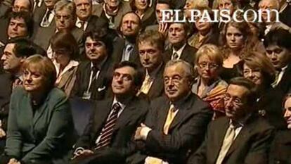 Un Rajoy timorato, que, como Zapatero, apenas habla idiomas y por tanto se ve incómodo en las citas internacionales, se acercó finalmente, con ayuda del ex primer ministro Jean Pierre Raffarin, que casi tuvo que empujarle ante su timidez, a Sarkozy y Merkel para unir sus manos y garantizar la foto que necesitaba. El líder del PP habló antes que sus colegas. A diferencia de ellos, mucho más aplaudidos, leyó prácticamente todo su discurso, centrado en la necesidad de mantener los valores europeos "frente al relativismo de algunos", una crítica que ya hizo Joseph Ratzinger precisamente antes de ser nombrado Papa.
