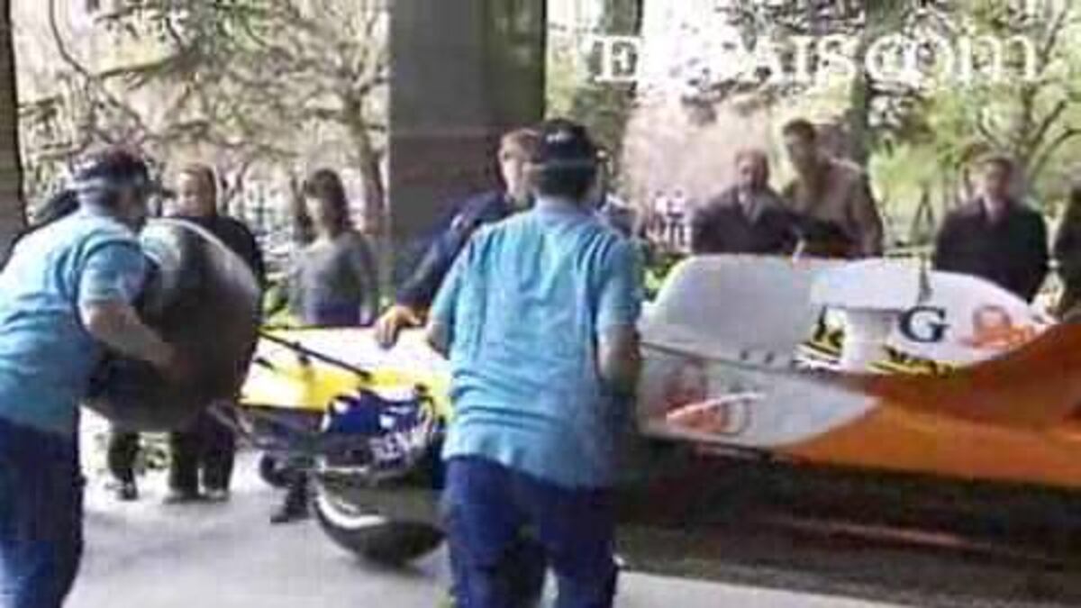 Una reproducción del coche con el que el español Fernando Alonso compite en el Mundial de fórmula 1, el Renault 28, está expuesta desde ayer y durante toda la temporada en la sede de la empresa de seguros Mutua Madrileña.