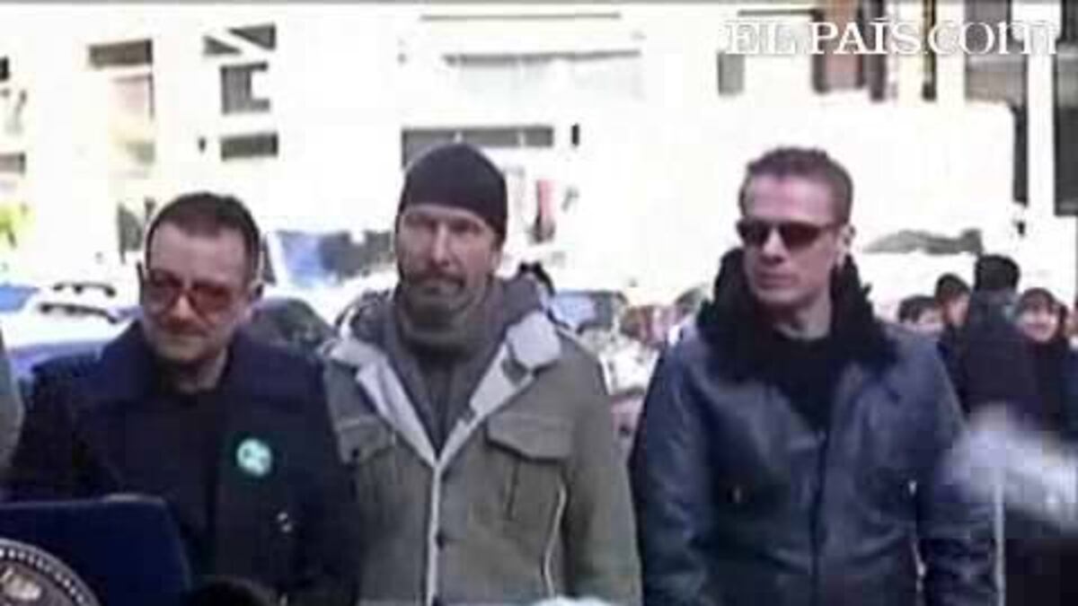 Crecer. Perfecto. Pero un líder con el carisma de Bono, con esa agenda que para sí quisiera cualquier primer ministro, con ese empuje por las causas justas, dos veces propuesto para el Nobel de la Paz, ha de enfrentarse también a sus contradicciones. Fue educado por una madre protestante y un padre católico. La Iglesia, la Biblia y Dios son una constante en sus declaraciones. ¿Qué opina Bono, entregado a la lucha contra el sida, de las declaraciones del papa Benedicto XVI condenando en suelo africano el uso del preservativo? "Si busco una respuesta religiosa, buscaré a Dios y escucharé al Papa; pero si necesito un consejo médico, acudiré al doctor. Las personas que están dejándose la piel sobre el terreno, las que viven día a día el drama, las que están en África asistiendo a la muerte por sistema, nos dicen que los preservativos son esenciales. Cualquier persona con un mínimo de sensibilidad sabe que eso es así, especialmente los misioneros católicos que luchan sobre el terreno. Pero en el abc de la lucha contra el sida se nos olvida una letra: A de abstinencia, B de fidelidad (be faithfull en inglés), C de condones; pero en esta ecuación ha de integraser la L de liderazgo. Y no comprendo que la Iglesia católica haya perdido ese liderazgo. La Iglesia no puede quedarse solamente en ofrecer consuelo; los activistas hemos conseguido que millones de niños tengan una escuela en África y la Iglesia católica de veras que se merece tener un liderazgo en estas cuestiones. Mi fe me lleva a pensar que es algo maravilloso pensar en Dios. Todos los músicos somos conscientes de que se nos ha otorgado un don magnífico y emocionante. Tus dedos se colocan en el traste de una guitarra, tocan una nota y, por algo superior, aparece de la nada la siguiente nota. Yo vivo mi fe. Tal vez es fácil decirlo, sobre todo formando parte de un grupo como U2, porque hemos conseguido convertirnos en una gran mierda [Risas]. En serio: hacemos canciones, tenemos un mensaje y para mí es un milagro que me hayan otorgado esta vida tan alucinante: por eso creo que es de ley pararse un momento cada día para decir: gracias, Dios".