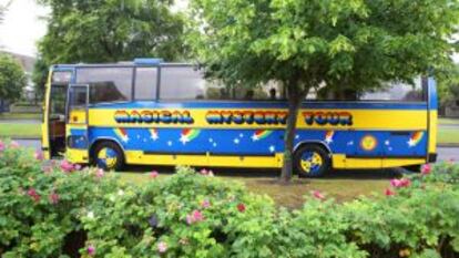 El modelo es prácticamente idéntico a aquel autocar que utilizaron los Beatles para rodar su película Magical Mystery Tour (a la izquierda, un fotograma con los cuatro músicos asomados por el techo del autobús). El vehículo original fue comprado por el poderío estadounidense de la cadena Hard Rock y ahora está en Orlando. Pero esta réplica, aparcada muy cerca de la casa en la que pasó su niñez Paul McCartney, realiza uno de los recorridos centrados en los Beatles más nostálgicos de todos los que se ofrecen en Liverpool.