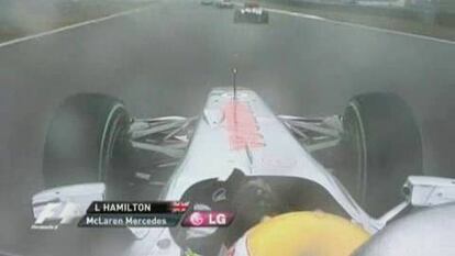 A partir de entonces, Rosberg y Button sacaron partido al dineral que han invertido sus respectivas escuderías en los coches que conducen y se largaron a todo trapo. Al encarar un viraje a la derecha, en la 18ª vuelta y bajo una cortina de agua, los neumáticos del Mercedes se deslizaron, el corredor bávaro midió mal una frenada y se fue largo, circunstancia que aprovechó el británico para superarle y ponerse al frente. Esperaron dos giros para cambiar de gomas, una operación que llevaron a cabo sin sobresaltos (20ª vuelta), justo cuando Alguersuari embistió por detrás a Karun Chandhok y obligó a salir al coche de seguridad, que reagrupó al pelotón (25ª vuelta).