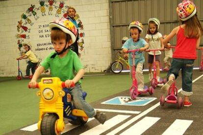 Las clases persiguen el mismo objetivo: formar peatones, ciclistas y conductores responsables. El contenido y la fórmula se adaptan a cada grupo de edad. Los más pequeños se divierten en los circuitos pilotando sus coches y patinetes. Los que pasan de los nueve años practican sobre la bicicleta. "El 30% no sabía montar en bici y ahora el 100% de la clase pedalea", destaca Cabarcos, "hemos logrado que muchos vengan al cole en bici, hacemos rutas para conocer la zona y un centenar de marchas ciclistas cada año". El fin de semana, muchos padres y abuelos también se han animado a pedalear con sus hijos.