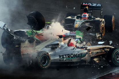 El accidente de Michael Schumacher en la primera vuelta del Gran Premio de Abu Dabi marcó el desarrollo de la prueba. El Mercedes del alemán derrapó y se quedó cruzado, en dirección contraria, en medio de la pista, lo que provocó que Vitantonio Liuzzi no pudiera esquivarlo. El Force India del italiano se estrelló contra el bólido del siete veces campeón mundial, pero ambos salieron ilesos de la embestida.