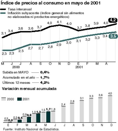 La tasa de inflación interanual sube al 4,2%.-El Gobierno califica el incremento como "claramente negativo"