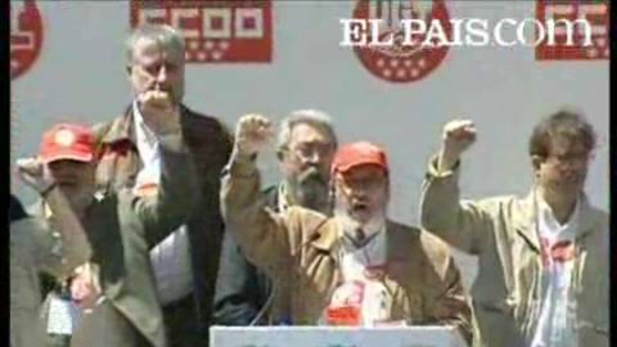 Los secretarios generales de UGT y CC OO pasan revista en un video exclusivo a las cifras de crecimiento económico estimadas por el Gobierno, al problema del paro y a las relaciones con el Ejecutivo en esta legislatura. Además, han dejado un mensaje para los lectores de ELPAIS.com con motivo del Día Internacional del Trabajo.Vídeo: P.CASADO/D.J.MADRID/N.MARCOS