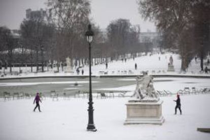 En París y su región, el espesor de varios centímetros de la capa de nieve acumulada durante la noche iban a seguir aumentando ligeramente durante la primera parte del día.