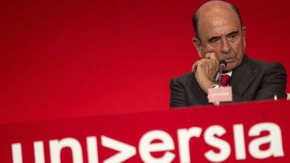 Botín ha hecho estas declaraciones hoy en Málaga, donde se ha celebrado la junta de accionistas de Universia —la red de universidades de todo el mundo impulsada por el Santander—, y llegan pocos días después del nuevo paquete de medidas económicas enviadas por el Gobierno español a Bruselas —que contemplan un recorte adicional de 3.000 millones— y al día siguiente de que el Banco Central Europeo bajara los tipos de interés del euro. La idea que ha expuesto Emilio Botín es que las cosas no van a ir a peor —“Estamos en el suelo-suelo”, “abajo del todo del ciclo”, ha explicado—, por lo que está convencido de que “a finales de este año o a principios de 2014” la situación va a empezar a mejorar y se empezara a crear empleo; otra cosa es cuánto se tardará en volver a “cifras razonables” partiendo de un 27% de paro: “Esto va a tardar más tiempo”.