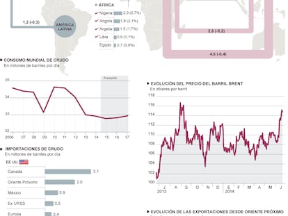 El conflicto iraquí, resucitado en estos días por el avance de las huestes islamistas radicales en zonas clave del Estado árabe, ha disparado el precio del petróleo a niveles inéditos en un año. La crisis ha recordado a los países importadores de crudo —desarrollados o emergentes— que aún dependen en exceso de una zona tan inestable como Oriente Próximo. El viejo orden petrolero, el encarnado por la Organización de Países Exportadores de Petróleo (OPEP), el que marca el paso de la oferta y la demanda desde la crisis de 1973, aún sacude la economía mundial a pesar de la apuesta por las energías renovables, la moda de los coches híbridos o las técnicas de explotación alternativas como el mentado fracking (fracturación hidráulica). Y es que las alternativas aún son caras, están verdes o carecen muchas veces de una voluntad política firme que las respalde; por lo que todavía queda al menos un decenio en el que los Estados importadores de crudo seguirán a merced de los conflictos en los países de Oriente Próximo, del Magreb, de África e incluso del este de Europa, como sucede ahora con Rusia, uno de los mayores suministradores de energía de la UE.