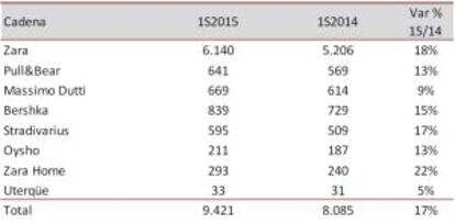 La empresa ha señalado en una presentación a analistas que de los 16,5 puntos de crecimiento, 2,5 se deben al impacto cambiario favorable por la depreciación del euro. El crecimiento en tiendas comparables, esto es, sin contar las nuevas aperturas, fue del 7% en el semestre. Los otros siete puntos se deben a las nuevas tiendas.