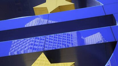 El edificio del Banco Central Europeo (BCE) reflejado sobre el símbolo del Euro.Foto: reuters_live | Vídeo: EFE
