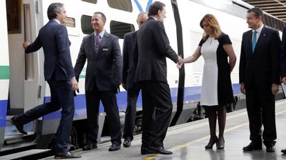 El presidente del Gobierno ha avanzado asimismo que Renfe ofertará ahora un total de 250.000 plazas por 25 euros para celebrar el aniversario. Además, ha comunicado la licitación en 2018 del tramo de 32 kilómetros de AVE en Almodóvar del Río —que servirá para reducir el tiempo del trayecto entre Málaga y Sevilla en media hora y beneficiará sobre todo a Granada—. Rajoy ha respondido así a las demandas de mayores proyectos hacia el sur que le ha planteado en directo y a la cara la presidenta andaluza, Susana Díaz.