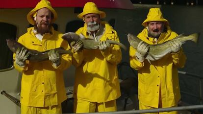 Ellos son los tres pescadores que traen en la bodega del Pelikan el cargamento de bacalaos que después entregan a un trajeado funcionario del Norges Bank, el banco central noruego, para que los introduzca en su maquinaria y los convierta en los nuevos billetes. El propio gobernador del banco central, Øystein Olsen, hace un cameo en el vídeo, anunciando la llegada a puerto del preciado cargamento.