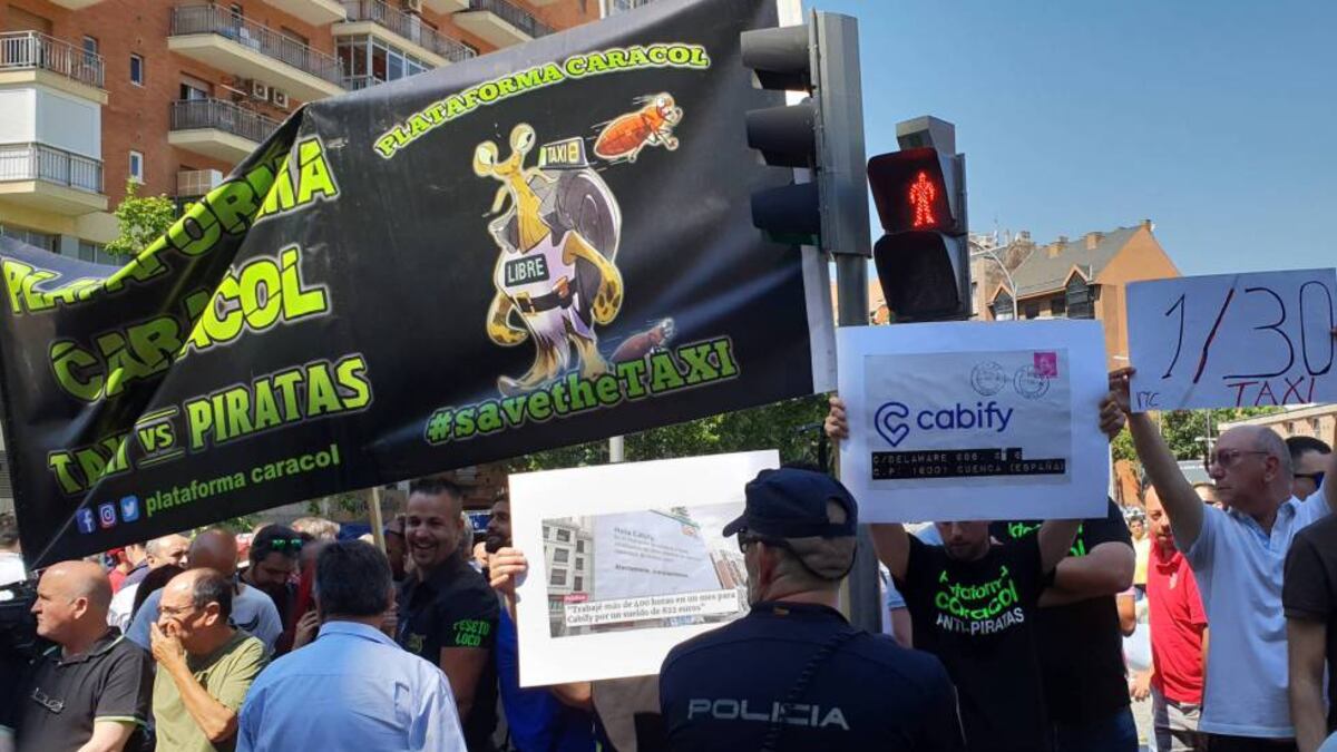 Varias decenas de taxistas de asociaciones como la Federación Profesional del Taxi de Madrid y Élite Taxi, se han concentrado a las puertas de los juzgados donde se celebra el acto de conciliación, para apoyar a los miembros de la formación morada y expresar su “más profunda repulsa e indignación” ante la demanda interpuesta por Cabify.