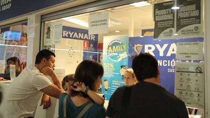 Tras la cancelación adelantada de 400 vuelos por parte de Ryanair, la programación de la aerolínea irlandesa en los aeropuertos españoles se ha cumplido con algunos retrasos, y sin grandes aglomeraciones en los mostradores porque los pasajeros afectados ya habían sido avisados con anterioridad a través de SMS o correo electrónico y reubicados en otros vuelos.