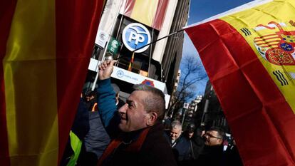 La tensión aumenta. El sector del taxi madrileño se manifestó este lunes por octavo día consecutivo contra los vehículos de transporte concertado (VTC) ante la inacción de las administraciones regional y local, que no terminan de aportar soluciones al conflicto. A primera hora de la mañana, la policía desalojó entre altercados a los taxistas que desde el domingo bloqueaban el paseo de la Castellana. La concentración se trasladó a la sede del PP, y después a la Puerta del Sol. Conductores de otras provincias se sumaron a las protestas en Madrid, que amenaza con convertirse en el epicentro de la guerra del taxi.