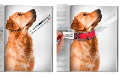 También puede servir para evitar que nuestras queridas mascotas sean sacrificadas, como en el ejemplo de la Sociedad Americana para la Prevención de la Crueldad hacia los Animales (ASPCA). Un pequeño tirador puede convertir una inyección mortal en un collar para el disfrute de su nuevo amo. Un alegato a favor de la adopción.