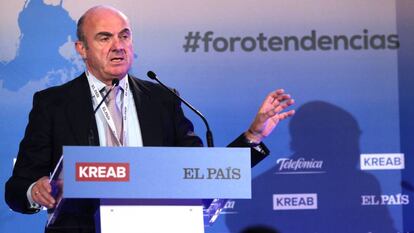 El vicepresidente hizo referencia a los problemas de gobernanza que supone que cada país tenga capacidad para realizar sus presupuestos sin coordinación comunitaria. Por eso dijo que una autoridad fiscal que controlara el gasto y los ingresos sería “importantísimo” para la Unión Europea. “Éste es el futuro. Es la forma en la que la unión monetaria tiene que evolucionar”, precisó Guindos. El vicepresidente del BCE reclamó más gasto a los países con superávit fiscal en materias como medioambiente, infraestructuras y educación, durante su intervención en el Foro Tendencias 2020, organizado por el EL PAÍS y la consultora de comunicación KREAB con el patrocinio de Ferrovial y Telefónica.