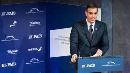 Pedro Sánchez tiene una visión muy optimista de la economía española. Está convencido de que el ciclo de crecimiento no se ha agotado entre otros motivos porque España empezó a recuperarse de la crisis de 2008 mucho más tarde que otras economías europeas. Pero el presidente en funciones admite que el bloqueo político supone riesgos y puede frenar algunas inversiones. Por eso, durante su intervención en Nueva York en el foro económico organizado por la Cámara de Comercio España-EEUU y EL PAÍS —con el patrocinio de Abertis, BBVA, PwC, Telefónica y Baker McKenzie con la colaboración de Iberia—, entró de lleno en esa situación política y aseguró que su Gobierno dará “estabilidad y certidumbre” si logra consolidarse en las elecciones.