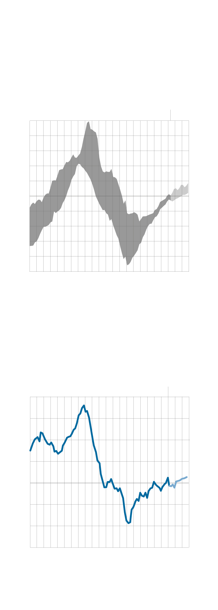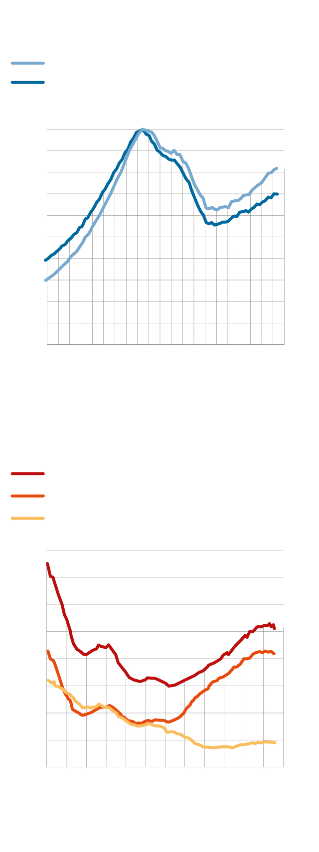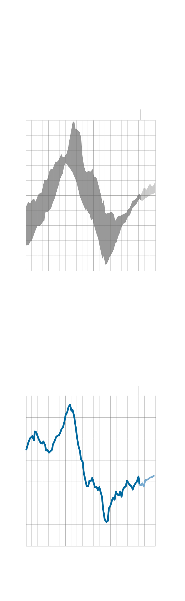 El área sombreada representa la franja entre mínimos y máximos de un grupo de indicadores del sector inmobiliario basados en precios, rentas, coste de alquiler y tipos de interés.